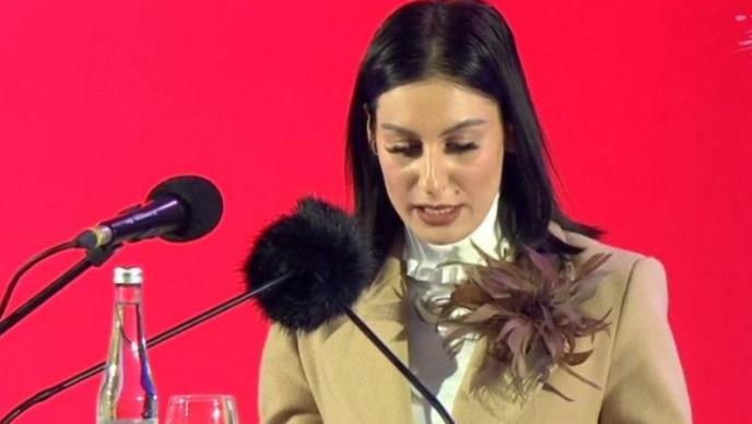 Studentkinja Marina Stanišić bila je prva govornica koja se obratila na svesrpskom skupu ''Srećemo se na Sretenje'' u Sremskoj Mitrovici.