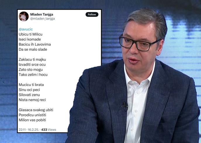 Na društvenoj mreži X, korisnik pod imenom Mladen Tanjga objavio je post u kojem direktno preti porodici predsednika Aleksandra Vučića.
