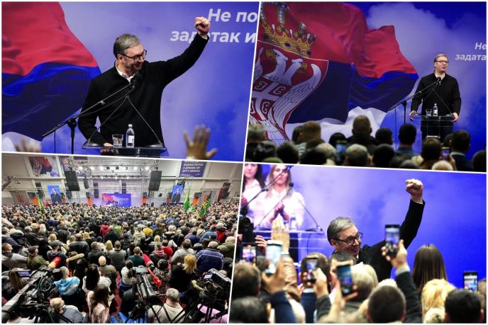 - Do 2027, da penzije budu 650 evra prosečno, a plate 1400 evra prosečno. A onda novi ciljevi, još ambiciozniji, još snažniji, i da to guramo zajednički ogromnom energijom, kao buldožer i bager i valjak zajedno. Da Srbija pobeđuje na svakom mestu, da se izborimo za svaki grad i za svako selo. Da pokažemo ambiciju, volju i želju. I da to ne bude protiv bilo koga, već da to bude za Srbiju. Vidite, pokušali su, više od tri milijarde su uložili u naše rušenje. Mnogo para su uložili. Organizovali čitave medijske grupe za pritisak. Ogroman novac su uložili. Uložili su u mnogo nevladinih organizacija. U bog zna kakve sve političke organizacije su uložili. Američki predsednik Donald Tramp kaže kako su ulagali desetine i stotine miliona evra u promenu vlasti u Srbiji. I jesu li uspeli? Evo da vam kažem, da vam otkrijem tajnu. Propala im je obojena revolucija. Nikada neće uspeti. U Srbiji se narod pita. I narod je rekao, nećemo sluge strane. Počnimo da biramo svog predsednika, svoju vladu i svoju skupštinu. Neće narod sukobe. Narod hoće da na izborima odlučuje ko će da upravlja u njegovo ime, a ne na ulici. I razdvojite tu uvek studente. Ima onih koji slušaju Dinka Gruhojnića. Ali najveći broj, preko 90%, to su časni mladi ljudi, koji gledaju kako da isprave krive drine, neke nepravde. Da li su u pravu ili nisu. Negde jesu, negde nisu. I odvojite ih od političara koji beže od demokratije, koji ne smeju na izbore, koji ne smeju na referendum. Jedino što znaju to je, jurićemo te kao Čaušesku. Hvala vam što ste ubice, dobro je da nam kažete da ste to. Pa ćete da plivate po Savi i Dunavu. Dobro, ja počeo sam da treniram i veslanje, da bi od takvih junaka mogao da se sklonim. Ali da vam objasnim. Samo vas molim, u sve to što možemo i osmeh i podsmeh ponekad da izazovemo, samo vas molim da razmislite.
