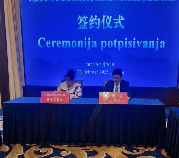 Grad Jagodina i kineski grad Zibo potpisali su Sporazum o uspostavljanju prijateljskih odnosa u ekonomskoj, sportskoj, obrazovnoj i kulturnoj saradnji. Sporazum su u Zibu potpisali gradonačelnik Ziba Džao Ćingvei i gradonačelnica Jagodine Gordana Jovanović.