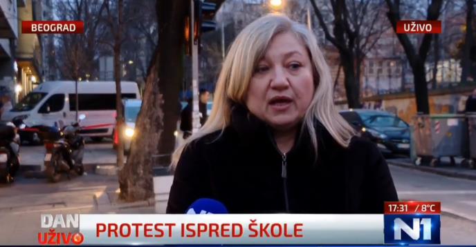 Televizija N1 pomno je pratila slučaj učiteljice Osnovne škole "Vladislav Ribnikar" Sabine Gicić koja je đake četvrtog razreda odvela na studentske proteste na Pravnom fakultetu u Beogradu. Reporter N1 uključio se i sa skupa podrške učiteljici.