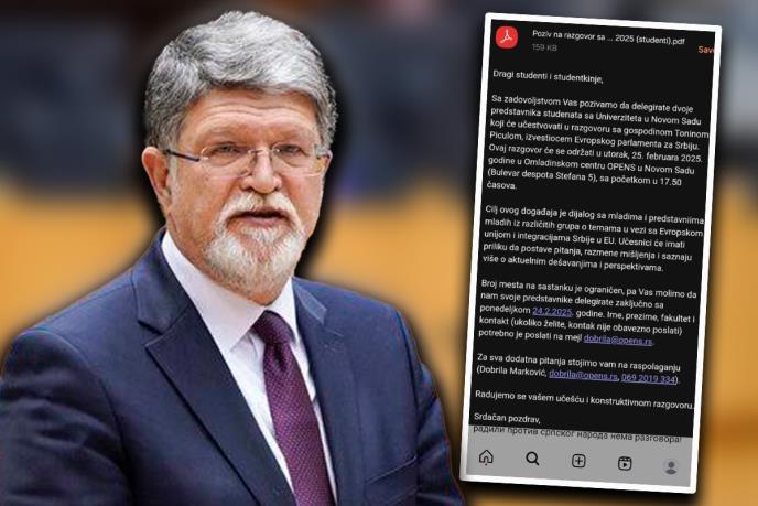 Novi izvestilac Evropskog parlamenta Tonino Picula, hrvatski političar i nekadašnji šef diplomatije te zemlje, uporan je u demantovanju da je zvao predstavnike studenata Novosadskog univerziteta na sastanak i razgovor, međutim u tom pokušaju je raskrinkan!