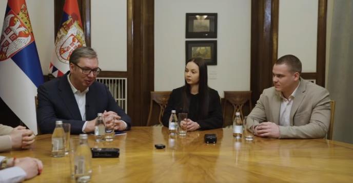 - Uvek se radujem razgovoru sa mladima. Studente koji su me posetili na radnom mestu interesovalo ih je mnogo toga, od cene školarina i onoga što je država preuzela na sebe kako bi rasteretila roditelje, preko stambenih kredita za mlade, do svega što smo uradili u njihovim rodnim gradovima. Pogledajte o čemu smo još razgovarali - poručio je Vučić u video snimku koji je podelio na svom Fejsbuk nalogu snimak.