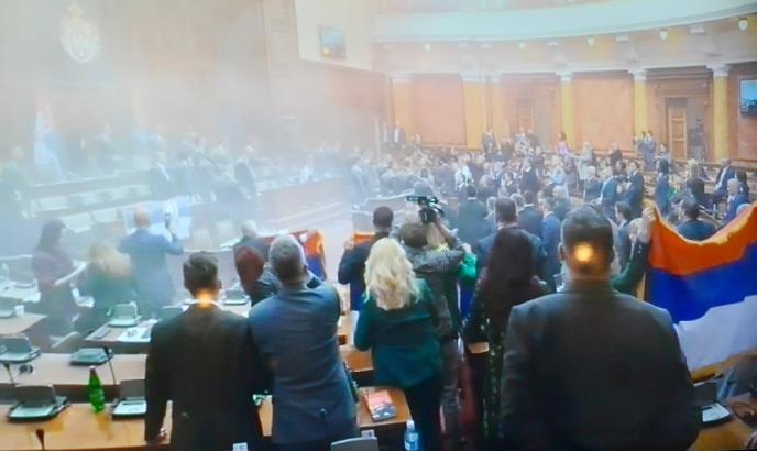 Podsetimo, danas je u Skupštini nastao haos neposredno posle usvajanja dnevnog reda sednice. Poslanici opozicionih stranaka su izleteli iz klupa i jurnuli ka stolu predsedavajuće, a u napadu su korišćene i dimne bombe. Tri poslanice su povređene.