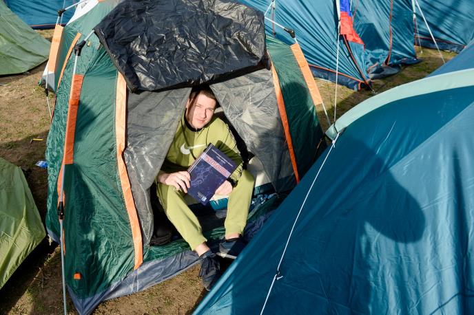 Miloš Pavlović, student treće godine Medicinskog fakulteta Univerziteta u Beogradu, noć je proveo u šatoru, u Pionirskom parku u prestonici, zajedno sa svojim kolegama koji hoće da uče.