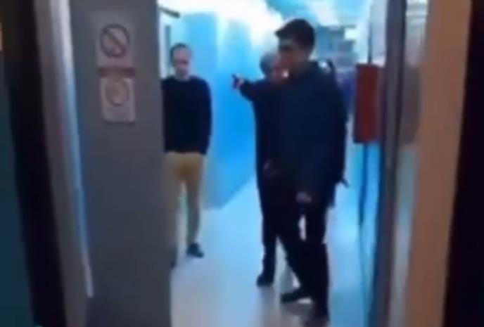 "Izađi napolje, izađi napolje! Ti, jel si student? Izađi napolje! Izađite napolje, napolje! Počinjem da vas fotografišem i bićete svi kažnjeni", izgovara profesor koji je studente blokadere najurio iz ove ustanove.