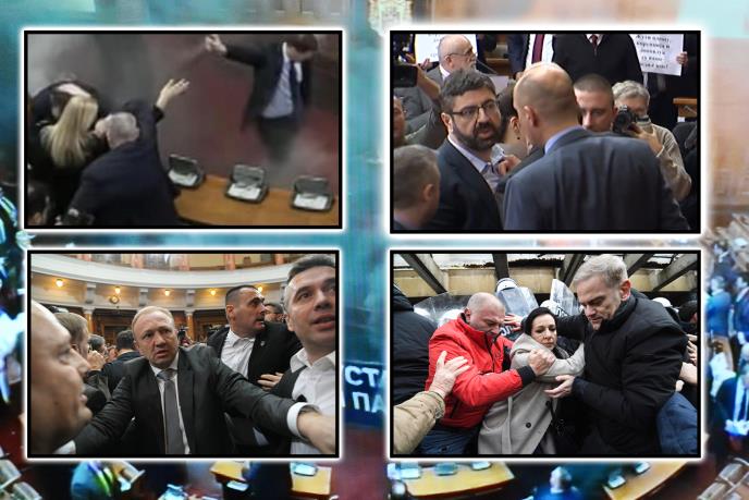 Opozicioni poslanici narpavili su nezapamćen haos u skupštinskoj sali, kada su u sred zasedanja bacili dimne i šok bombe, gađali polsanike vladajuće koalicije flašama, čašama i jajima, duvali u pištaljke i vuvuzele, vikali, a tokom svega toga su povređene tri poslanice. Pošto ovo izgleda nije bilo dovoljno, juče su nasrnuli na policiju i pojedine novinare ispred Skupštine grada, a gađali su ih i jajima i farbom.
