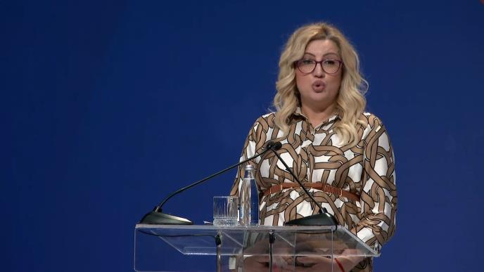 Poslanica Sonja Ilić, koja je brutalno napadnuta u 8. mesecu trudnoće u Skupštini Srbije, obratila se večeras okupljenima u Sava centru, tokom skupa "Žene, snaga Srbije", gde su se obratili i predsednik Republike Srbije Aleksandar Vučić i predsednica Narodne skupštine Ana Brnabić.