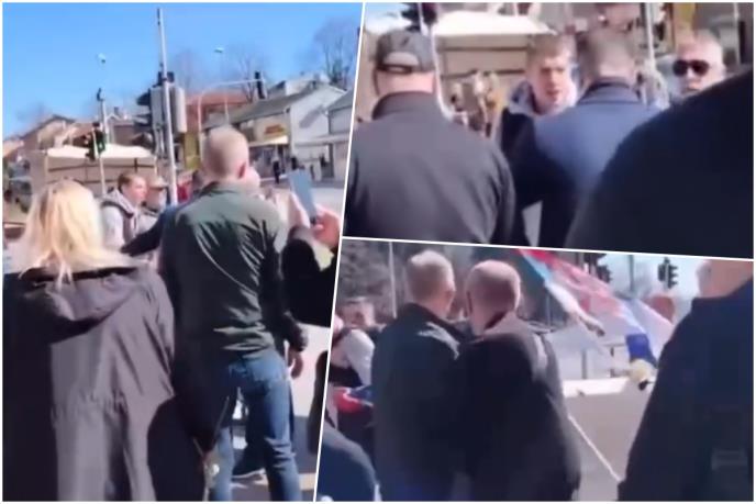 Kako se vidi na snimku koji se širi mrežama, muškarac koji je bio sa suprugom i detetom pretio je članovima SNS, a zatim i pokušao da se obračuna sa njima.