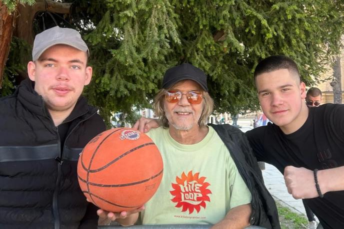 Stjepan Đurić u razogovru sa Milošem Pavlovićem u Pionirskom parku