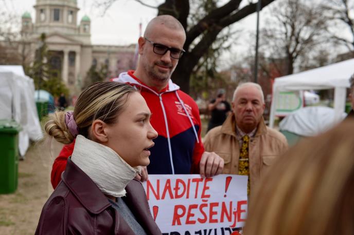 "Mislim da poruka mora da ima dublju tematiku. Kao svaki čovek koji ima poštenje, moral i empatiju, osećam se dužnom da treba da pružim podršku posle pada nadstrešnice i stradanja svih tih nevinih ljudi, ali isto tako molim ljude da se probudi svest u tim mladima i deci da se vratimo u zakonske okvire štrajka i da se ne uskraćuje, profesori i ko može da utiče, pravo deci na obrazovanje. Ako su deca nesvesna, roditelji i profesori su ti koji treba da utiču na njih da se osveste i brinu o svojoj budućnosti. Moja poruka je da se držimo zajedno, jer svi smo mi ovde iz istog razloga. Nikome ovde nije odstranjena empatija, samo znamo ili smo svesni da se bavimo problemom u svom dvorištu. Isto tako, da se rešava problem nasilja u školama od profesora. To je mobing koji kruži po zbornicama i mnogi đaci su ga pretrpeli, ali mnogi ćute o tome. Ja sam neko ko je izašao, ko zna za šta se borim. Borim se za to da se nađe rešenje da se đaci vrate u klupe i završavaju svoje školske godine i borim se protiv mobinga i licemerja i dvoličnosti među ljudima", završila je Marina posle čega je dobila aplauz, poljubac i poruku.