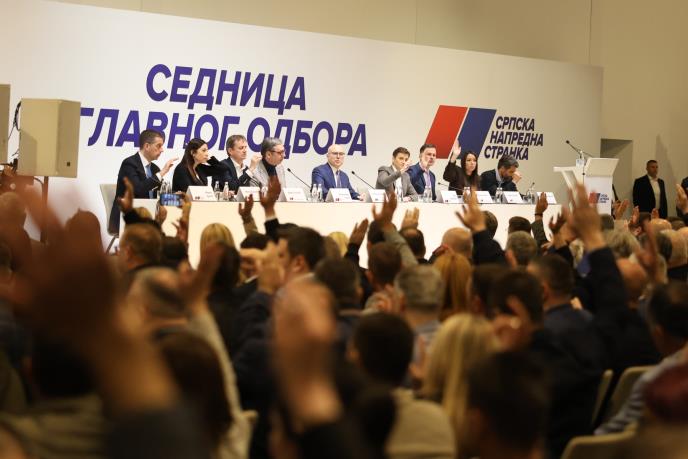 Predsednik SNS Miloš Vučević obratio se posle današnje sednice Glavnog odbora te strane održane u Sava centru i naglasio da je prethodno održana i sednica Predsedništva.