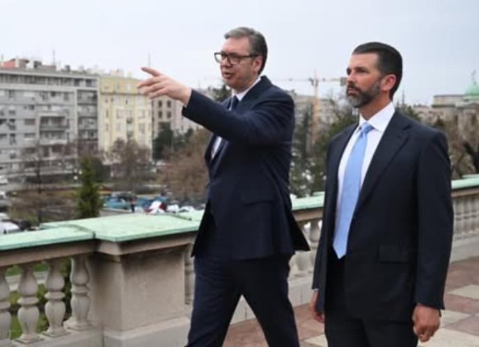 "ZAJEDNO GRADIMO SNAŽNIJE VEZE I SVETLIJU BUDUĆNOST" Vučić pokazao Trampovom sinu pogled na Beograd sa terase Predsedništva: Dobro došli, dragi prijatelju! FOTO
