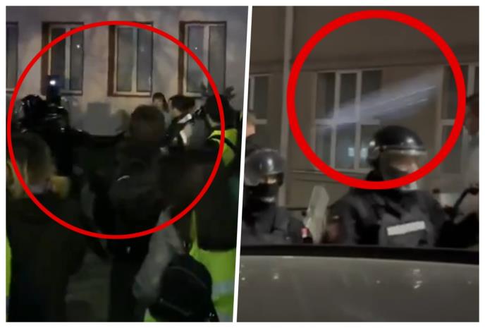 Snimak na kojem se vidi da je policajac nečim pogođen u glavu, njima se očigledno ne sviđa, jer se na njemu jasno vidi da studenti blokaderi napadaju pripadnike Žandarmerije, gađajući ga u glavu.