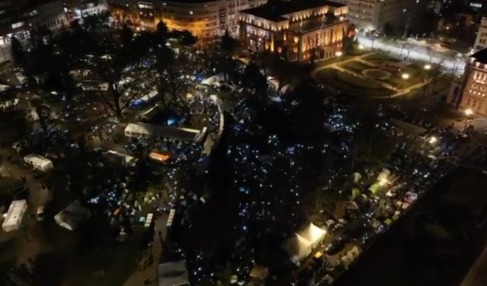 VELIČANSTVEN PRIZOR IZ VAZDUHA: Studenti koji hoće da uče upalili telefone i obasjali Pionirski park - pogledajte spektakularne kadrove iz drona (VIDEO)
