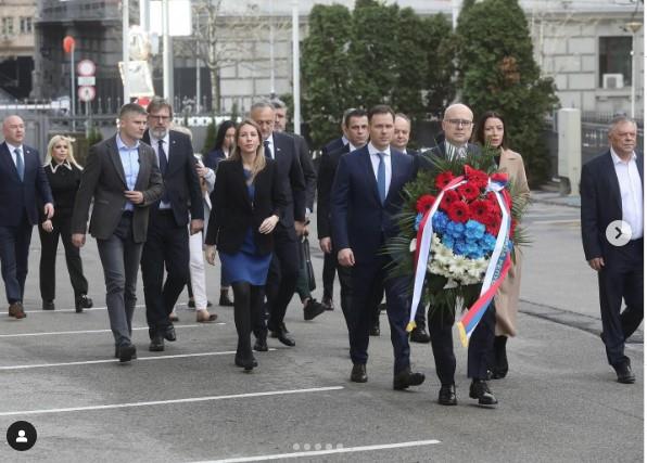 Pored premijera Miloša Vučevića polaganju venaca su prisustvovali i članovi Vlade u tehničkom mandatu i ministri Siniša Mali, Irena Vujović, Dubravka Đedović Handanović, Maja Popović, Dejan Ristić, Nemanja Starović, Nenad Popović, Novica Tončev.