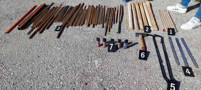 POLICIJA I U SMEDEREVU ZAPLENILA PREDMETE POGODNE ZA NAPAD! Službenici pored auto-puta pronašli metalne šipke, držalice za oružje, pajsere, čekiće, baklje FOTO
