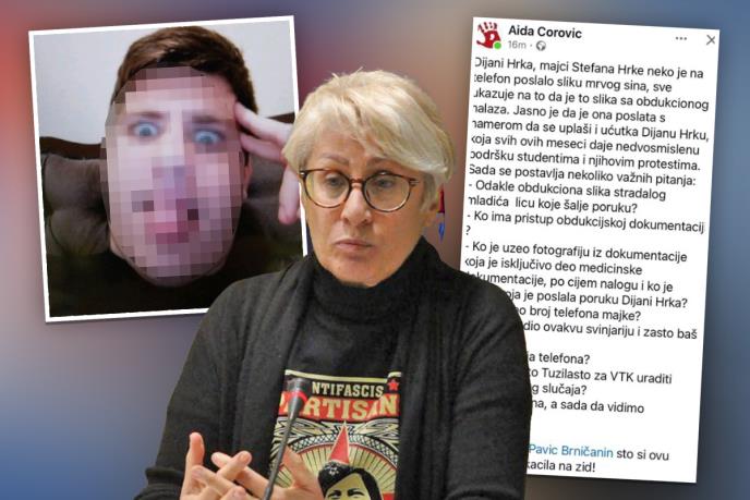 Aida Ćorović u objavi na društvenim mrežama tvrdi da je Dijana Hrka dobila sliku stradalog sina Stefana, tvrdeći pritom da je nesrećnoj majci to učinjeno kao vid pretnje jer je podržala studente blokadere! Aktivistkinja brutalnu igru nastavlja nizom pitanja na tu temu...