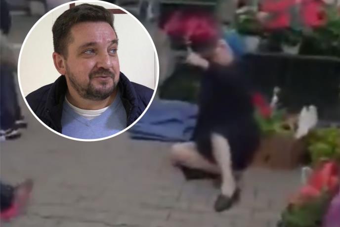 - Šta uradi čoveče? Pa to je nečija majka! Što ste je gurnuli? - čuje se kako govori muškarac koji prilazi da pomogne ženi, dok se u pozadini čuje kako neko dovikuje "Sram vas bilo!".