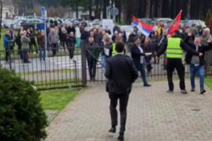 Naime, jedan od zaposlenih u opštini pokušao je da zatvori kapiju ispred okupljenih blokadera, što im se nije dopalo pa su burno reagovali. Jedan od blokadera ušao je u dvorište, nakon čega je obezbeđenje izašlo na kapiju.