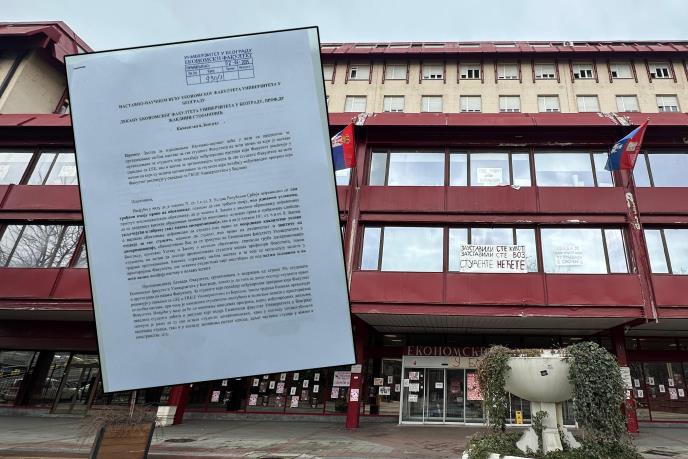 Studenti Ekonomskog fakulteta u Beogradu juče su imali sastanak sa dekanskim kolegijumom na kom su zvanično predali dekanki i dekanskom kolegijumu dokument.