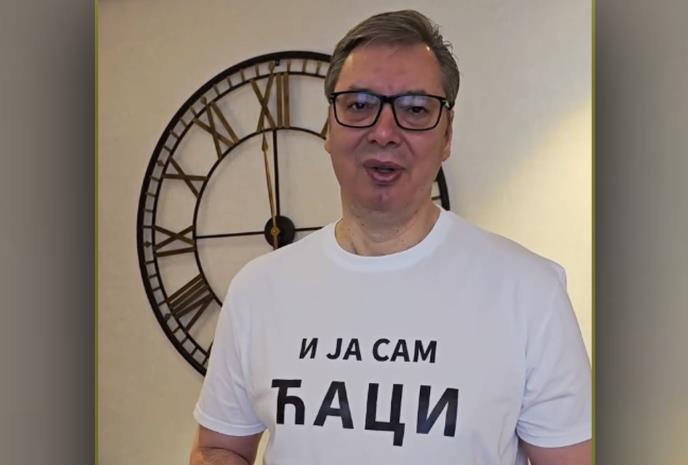 PREDSEDNIK VUČIĆ SVIMA ČESTITAO DAN STUDENATA U MAJICI "I JA SAM ĆACI": U istoriju će ući kako su neki mladi ljudi imali hrabrosti da se suprotstave gomili