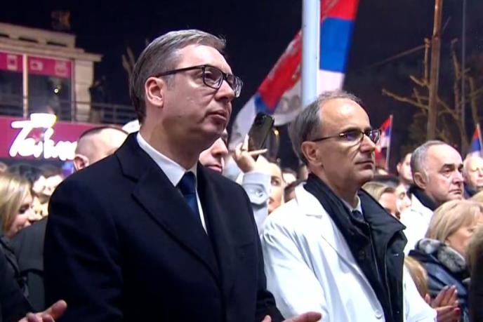 - Premijer Miloš Vučević, koji je časno i odgovorno obavljao svoju dužnost, je podneo ostavku 28. januara. Zbog čega? Pre njega su podneli dvojica ministara, gospodin Vesić i gospodin Umirović. Kao moralnu političku odluku zbog tragedije koja se dogodila. Miloš Vučević je podneo ostavku posle večeri u kojoj smo mi rekli da niko ne sme da prihvata nasilje druge strane i da ne sme da se odgovara na njihovo nasilje. Jer ne moram da vam kažem da su napadali njene pripadnike i ljude svuda, dakle od Kraljeva do mnogih drugih mesta u Novom Sadu najčešće. I kada smo pozvali sve ljude na mir te večeri i rekli nema tolerancije bilo kakve. Nulta tolerancija prema onima koji hoće da učestvuju u nasilju - naveo je.