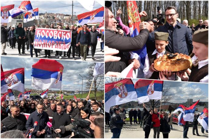 "Naši heroji sa Kosova i Metohije prelaze dug put do Beograda kako bi pružili podršku predsedniku Aleksandru Vučiću i kako bi dali svoj doprinos u zaštiti i očuvanju naše jedine države Srbije. Slike i prizori, gotovo neverovatne scene zavejanih srpskih momaka kako idu dolinom Ibra, kroz najteže vreme i kako se na čelu kolone vijori srpska zastava je lekcija iz patriotizma i rodoljublja. 160 naših momaka sa Kosova i Metohije su još jednom ispisali istoriju iz morala, časti i ljubavi prema državi Srbiji", istakao je Petković.