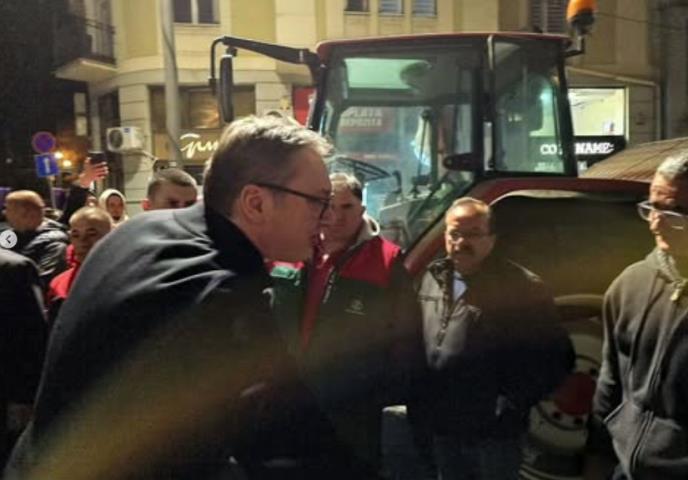 "2 sata ujutro. Dočekao sam traktoriste, srpske domaćine, koji ne daju Srbiju", napisao je Vučić na Instagramu.