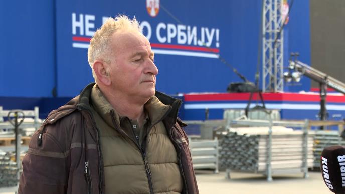 - Nalazim se ispred platoa Narodne Skupštine, iza mene je postavljena bina sa natpisom "Ne damo Srbiju", što je i slogan ovog velikog skupa, a same pripreme su skoro pa završene. Sve je lepo organizovano, ljudi uveliko rade na pripremi svega. Podsetiću građane, da će se upravo sa ove bine sutra predsednik Srbije, Aleksandar Vučić, obratiti svim građanima. Postavljeni su punktovi gde će građani moći da glasaju za novo ime pokreta - rekao je Ivković i dodao: