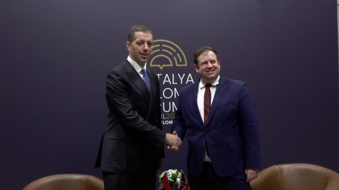 Ministar spoljnih poslova Srbije Marko Đurić sastao se danas na marginama Antalijskog diplomatskog foruma sa državnim ministrom za Evropu, Severnu Ameriku i prekomorske teritorije Ujedinjenog Kraljevstva Velike Britanije i Severne Irske Stivenom Dautijem.