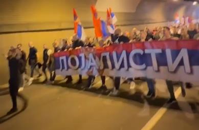 Na svenarodni skup u Beogradu "Ne damo Srbiju" stigla je velika grupa ljudi koja nosi transparent "Lojalisti".