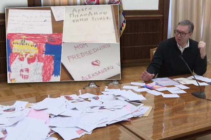 Među mnogobrojnim pismima, Vučića su najviše obradovale ali i nasmejale upravo poruke mališana, koji su mu ostavljali i crteže srpske trobojke, uz poruke "Živela Srbija!".