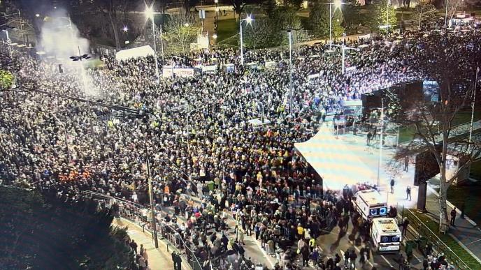 Policijska uprava za grad Beograd saopštava da je centralno okupljanje trodnevnog javnog skupa „Ne damo Srbiju“ koje je održano juče ispred Narodne skupštine u Beogradu proteklo bez većih incidenata, uz profesionalno angažovanje pripadnika policije koji su obezbedili stabilan javni red i mir.