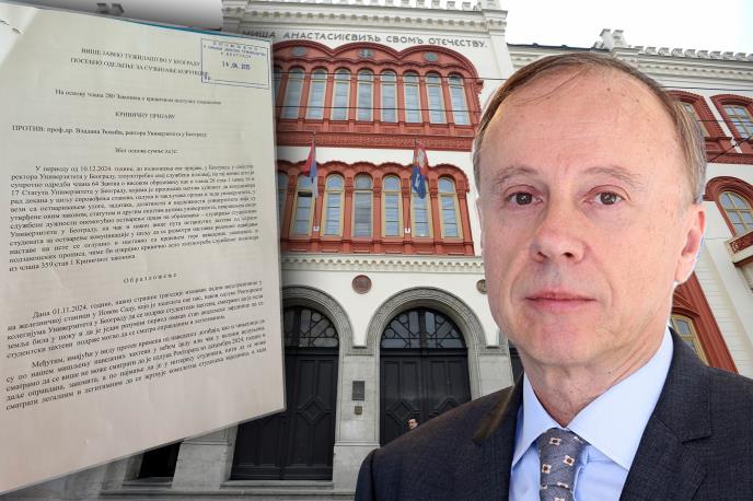 Kako saznajemo, u krivičnoj prijavi koju je deo studenata podneo Posebnom odeljenju za borbu protiv korupcije Višeg javnog tužilaštva u Beogradu navodi se da je on kršio zakon o visokom obrazovanju i beogradskom univerzitetu kojim je propisana njegova dužnost da rukovodi i sprovodi odluke Univerziteta tako što nije vršio svoje službene dužnosti pa je onemogućio većini studenata Univerziteta u Beogradu da nastave redovno studiranje iako je više puta dobio zahteve studenata koji žele da uče da im omogući slušanje predavanja na fakultetima.