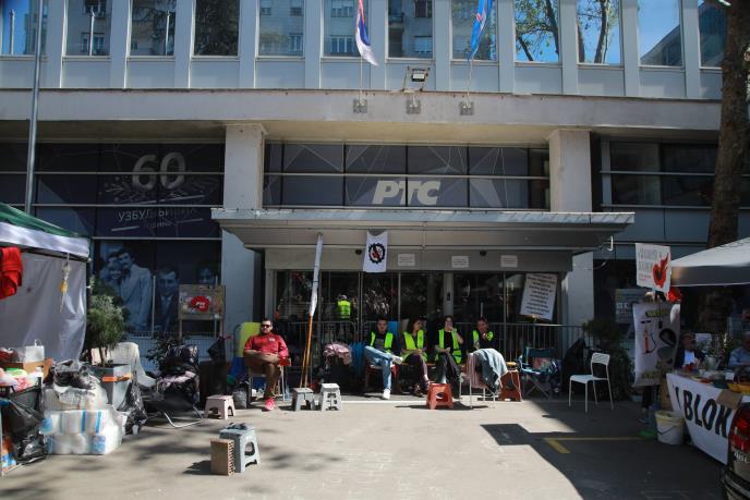Studenti blokaderi Beogradskog univerziteta od prošlog ponedeljka blokiraju ulaze Radio-televizije Srbije (RTS) u Takovskoj ulici i na Košutnjaku i već osam dana ne dozvoljavaju zaposlenima te medijske kuće da dolaze na svoja radna mesta. Kako je u pitanju krivično delo za koje po zakonu preti kazna i do godinu dana zatvora, postavlja se pitanje hoće li za to neko i odgovarati, hoće li tužilaštvo reagovati.
