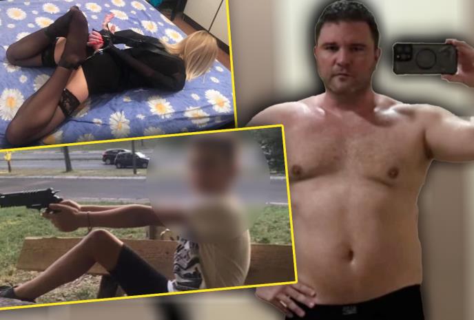 Kako se vidi na fotografijama koje objavljujemo, on je fotografisao ženu, za koju se, sudeći po komentarima, sumnja da mu je supruga u halterima i sa lisicama na rukama, a potom to postavio na drušvene mreže. Takođe, maloletnom sinu je dao pištolj u ruke.
