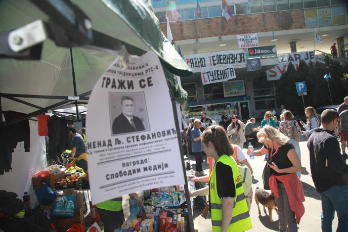 "Navedene poternice su dana 15. aprila 2025. godine, tokom protivzakonite blokade objekata RTS-a koja počev od 14. aprila i dalje traje, od strane NN lica izlepljene po zgradama, banderama, saobraćajnim znacima i drugim javnim površinama u Takovskoj ulici u Beogradu, kao i u obližnjim ulicama u centru grada. Takođe, poternice su zalepljene i na prostorije RTS-a u ulici Kneza Višeslava br. 88 u Beogradu.