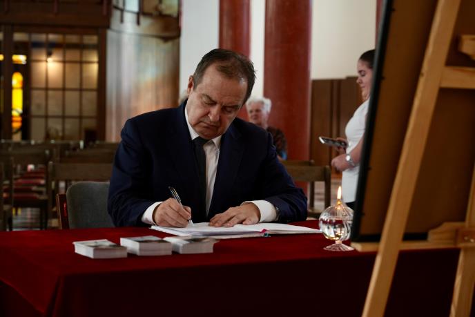 Potpredsednik Vlade i ministar unutrašnjih poslova Ivica Dačić upisao se danas u Katedralnoj crkvi Uznesenja Blažene Djevice Marije u Beogradu u knjigu žalosti otvorenu povodom smrti Njegove Svetosti Pape Franciska.