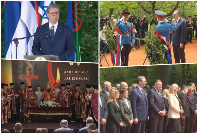 - Nigde toliko žrtava nije zaklano, ubijeno maljevima, testerama, paljeno, kuvano u kazanima, živo drano, vešano, davljeno, iskidano, ubijano, na najneverovatnije načine. I nigde se ljudski rod nije približio paklu kao što je to činjeno ovde u Jasenovcu. Ova fabrika smrti i užasa za 4 godine imala je samo jedan zadatak, da ubije što više Srba, Jevreja i Roma, rekao je predsednik Srbije.