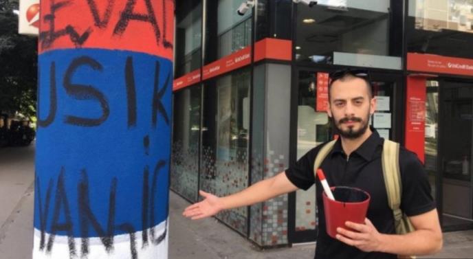 Osvedočeni srbomrzac poznat po skrnavljenju zastave Srbije, krečio je srpske trobojke, pozivao je na nerede i nasilnu smenu vlasti, upadao u Gradsku kuću, a danas je po ko zna koji put pokazao na delu da mu je nasilje glavni motiv.