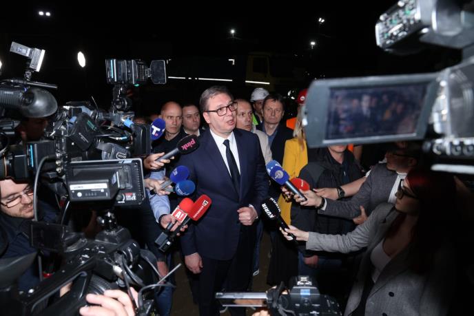 Predsednik Srbije Aleksandar Vučić obilazi radove na izlaznom portalu tunela „Iriški venac“