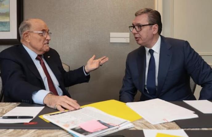 Predsednik Srbije Aleksandar Vučić sastao se sa Rudijem Đulijanijem, bliskim saradnikom američkog predsednika Donalda Trampa, tokom svog boravka u Sjedinjenim Američkim Državama.