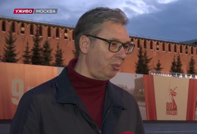 - Kad ga je ugostio u Srbiji? Sutra ću se sresti sa patrijarhom, sutra uveče imamo večeru svih lidera ovde, prekosutra rano ujutru je parada, onda izlazimo ovde, idemo da postavljamo cveće i vence, ručak, onda sa predsednikom Narodne Republike Kine imam susret, posle toga sa predsednikom Putinom razgovor, prvo mi pa sa delegacijama sastanak oko svih ovih važnih pitanja. Znate šta je za jednu malu zemlju i njenog lidera da se sastane sa dvojicom od trojice ili četvorice najmoćnijih lidera sveta u roku od nekoliko dana. Ogromna čast za našu zemlju. Srbija će ostati na evropskom putu, ja ću primiti kaznu na sebe i tražiti da ne kažnjavaju celu zemlju - rekao je Vučić i nastavio: