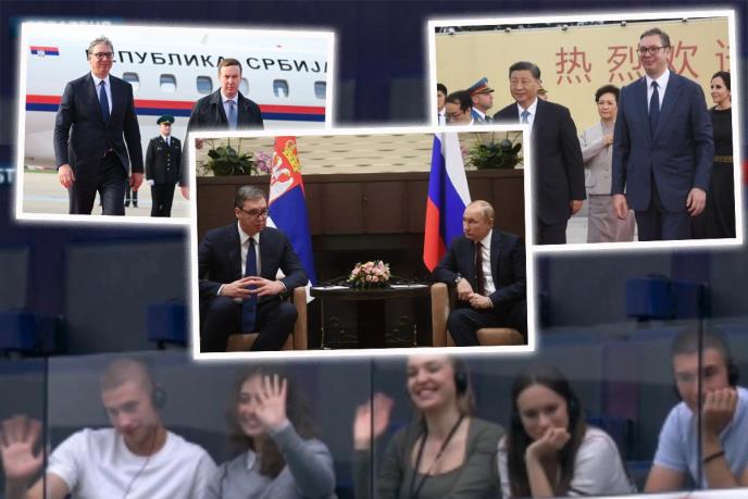Dok studenti blokaderi oduševljeno tapšu u Evropskom parlamementu ljudima koji pričaju najgore o Srbiji, upravo onaj koga po Birselu ali i u domovini zdušno pljuju, protiv koga se bore i kog nazivaju "nenadeležnim" je za to vreme na događaju u koji su uprte sve oči sveta i čiji su domaćin i gost dvojica od tri najmoćnija lidera na planeti!