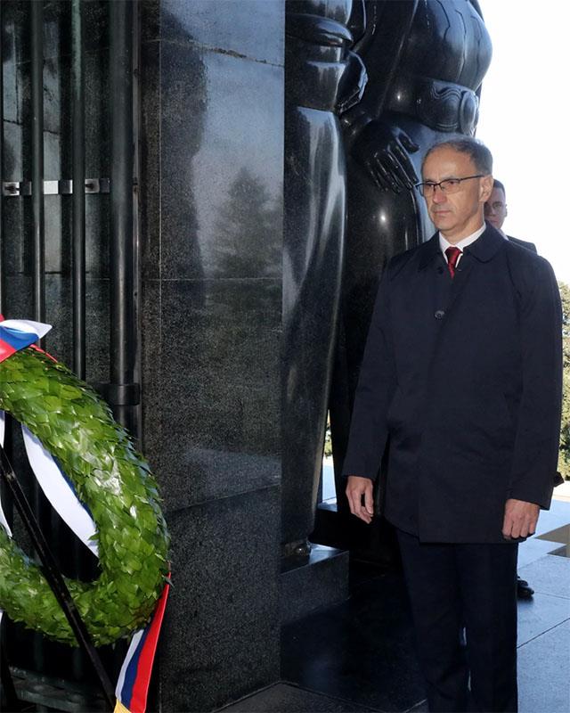 "NEKA JE VEČNA SLAVA I HVALA HEROJIMA KOJI SU DALI ŽIVOTE ZA SLOBODU OTADŽBINE": Premijer Macut položio venac Neznanom junaku na Avali povodom Dana pobede