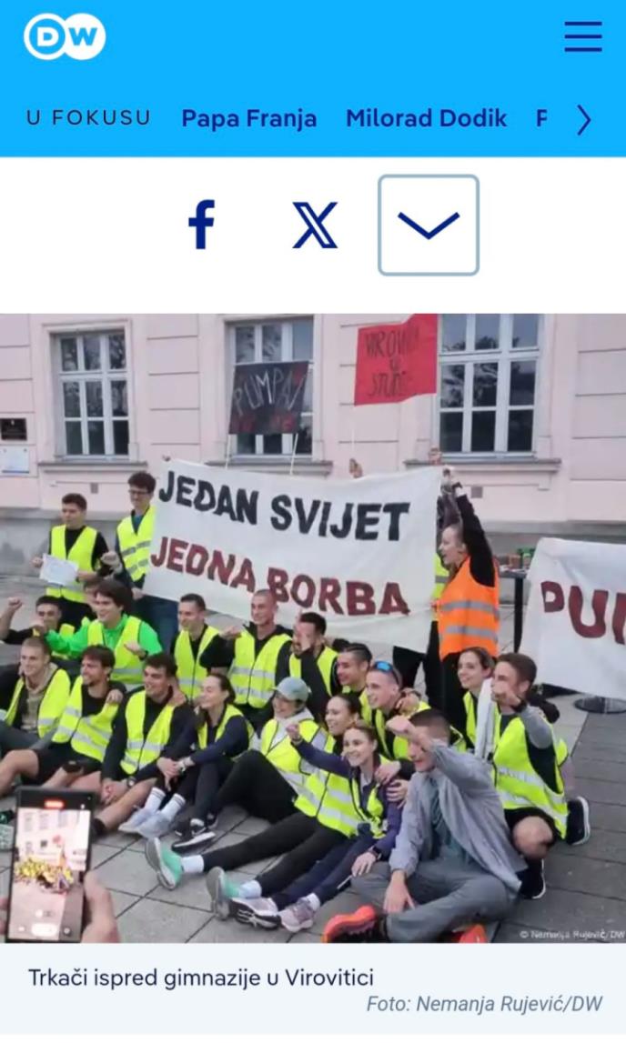 "U javnosti je, dodatno, putem nekih kanala, stvoren narativ koji pogrešno predstavlja celu akciju kao nečiju ličnu ideju i inicijativu, zbog čega se trkači uključeni u akciju i učesnika celog studentskog pokreta, kao i studenti uključeni u blokadu, s pravom, osećaju povređeno. Tokom trajanja akcije više puta smo pokušali da uspostavimo saradnju, uputili pozive na razgovor i zajednička rešenja, ali ti pokušaji nisu doveli do rezultata. Nijedan pojedinac ne može i ne sme biti iznad ove akcije bez obzira na svoje ime ili lične kontakte", poručili su studenti blokaderi.
