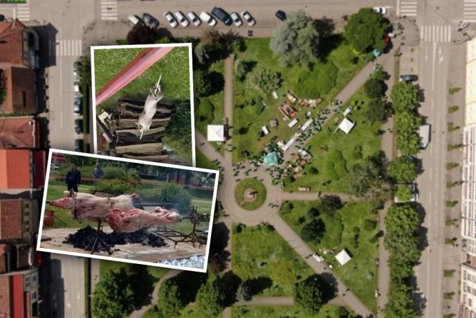 Na snimku koji kruži društvenim mrežama vidi se gozba - čak sedam prasića se okreću na ražnju, a osmo je u pripremi, veliki broj sokova, vode, hleba i salate je na stolovima - ali nema te mase blokadera, nema ko da se počasti!