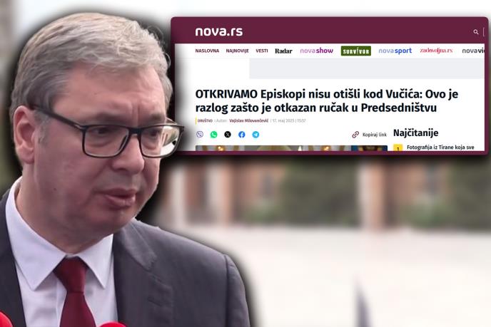 Opozicioni portal Nova.rs u nizu laži objavila je danas još jednu. Kao razlog što nije održan tradicionalni ručak, koji predsednik Srbije Aleksandar Vučić svake godine organizuje na kraju Sabora SPC, navode političku situaciju koja je, kako njihov "neimenovani izvor, blizak Patrijaršiji navodi".