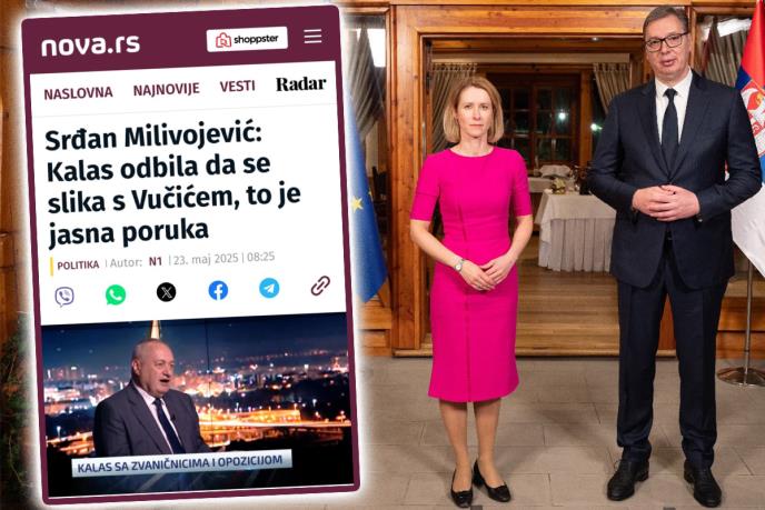 Mediji u vlasništvu Dragana Šolaka nastavljaju sa objavljivanjem laži, pa su tako N1 i Nova S objavili netačnu informaciju koju je saopštio lider Demokratske stranke Srđan Milivojević - da je visoka predstavnica Evropske unije za spoljnu i bezbednosnu politiku Kaja Kalas odbila da se fotografiše sa predsednikom Srbije Aleksandrom Vučićem prilikom posete Beogradu.